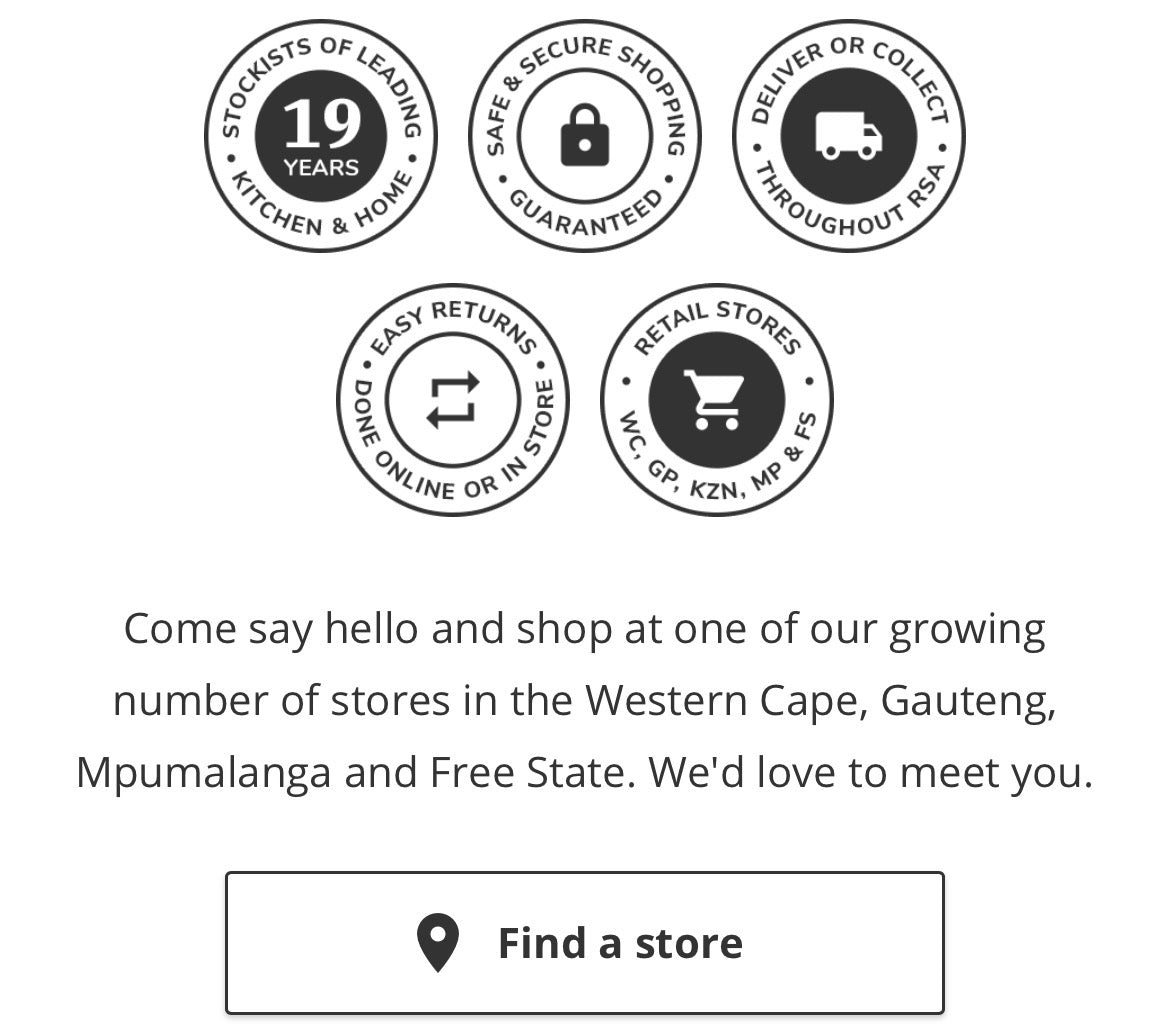 Free delivery for orders over R700or when you collect from our Cape Town, Johannesburg, Pretoria, Durban, Mbombela or Bloemfontein stores