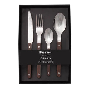 Perfect for entertaining or casual dining, this Louisiana Dark Wood Cutlery Set combines sleek style with comfort. Crafted from durable 18/10 stainless steel, it’s built to last and comes with everything you need — forks, knives, spoons, and teaspoons. Add a touch of laid-back sophistication to your next gathering.