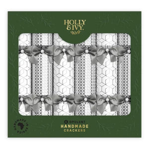 Holly & Ivy Opulent Silver Geo Patterns Crackers, Pack of 6
