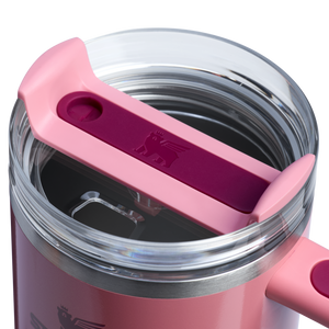 This travel tumbler is just what you need for all-day hydration. Take it with you to a high-intensity workout or on an extra-long commute to keep your drink cold for hours. The lid features a rotating cover with three positions: a straw opening, a wide mouth for drinking, and a full-cover top to prevent spills. The larger size even fits comfortably in your vehicle’s cup holder and comes with a rugged handle for carrying.