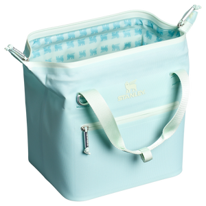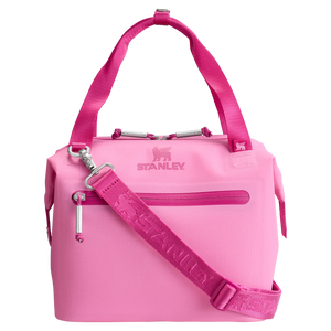 With a 10-can storage capacity, the All Day Julienne Mini Cooler keeps your goods nice and cool for 12 hours. The unique “doctor’s bag” hinge top pops open to help with unpacking. Load up with reusable ice packs, pop it shut and the sturdy zipper keeps things safely stored. The snap-top handles have a comfortable grip, while a zippered pocket protects your valuables. There’s also the option to attach the strap to sling the cooler over your shoulder. From acai bowls to charcuterie, sparkling beverages and wine are ready to be enjoyed. Don’t forget to pack all your favorite snacks and drinks in Stanley style.