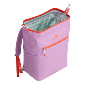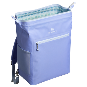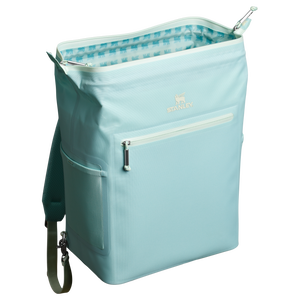 With a 20-can storage capacity, the All Day Madeleine Midi Cooler Backpack maintains the perfect chill for 24 hours. There’s even a mesh pocket designed to fit your Quencher or bottled beverage of choice. The unique “doctor’s bag” hinge top pops open to help with unpacking, and padded straps make carrying more comfortable. Load up with reusable ice packs, pop it shut and the sturdy zipper keeps it all safely stored. A discreet zipper pocket on the cooler’s back helps to protect valuables. From smoothies to fresh sandwiches, your favorite wine and beverages are ready to share. Don’t forget to pack all your favorite snacks and drinks in Stanley style.