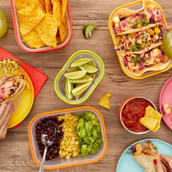 • Set includes 1 x 946ml container with lid and 2 x 350ml containers with lids